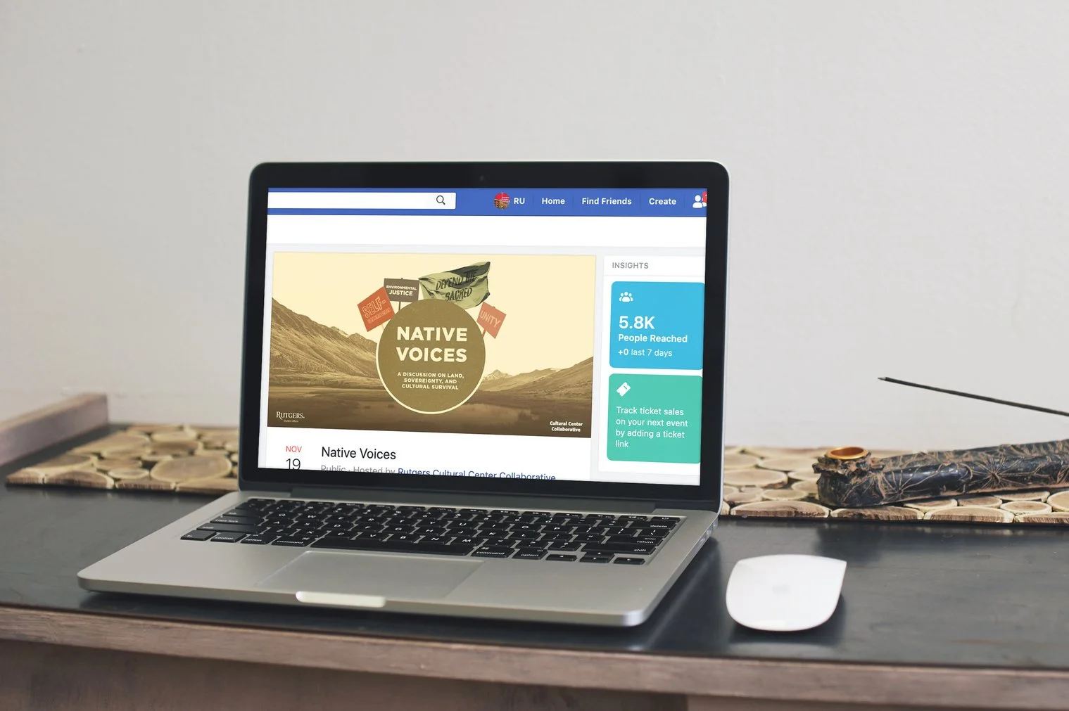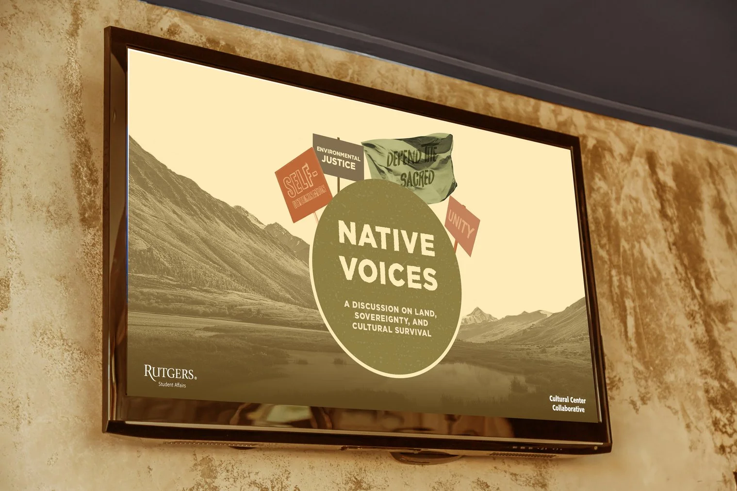 Working with the client, the Cultural Center Collaborative at Rutgers University–New Brunswick, I developed the marketing strategy for their annual Native American Heritage Month event called Native Voices. We used a variety of tactics to achieve the 250-person attendance goal, including print, email, social media, and other important university advertising outlets. I created the visual branding for the event with the assistance of my graphic design intern and coordinated the live social media and photography coverage for the event with the assistance of my social media intern and two photography interns.